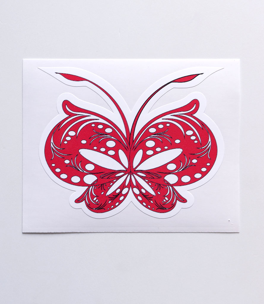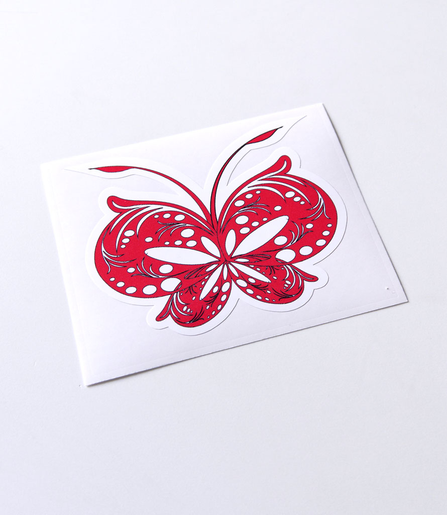 Декоративная наклейка "Бабочка", красная в категории "Наклейки бабочки" - яркая самоклеящаяся наклейка из виниловой плёнки с водостойким изображением из 16 миллионов цветов. Наклейка полностью готова к нанесению, живые и насыщенные цвета этой наклейки обеспечиваются применением японских чернил на основе растворителя с печатью изображения на цифровых плоттерах гранд-формата от лидеров индустрии. Стикер-наклейка может иметь любую форму - вырубка по контуру выполняется на станке с программным управлением. Все операции по изготовлению наклейки выполняются нами на собственном производстве, удобно расположенном в центре России для минимизации затрат и гарантии конкурентоспособной цены.